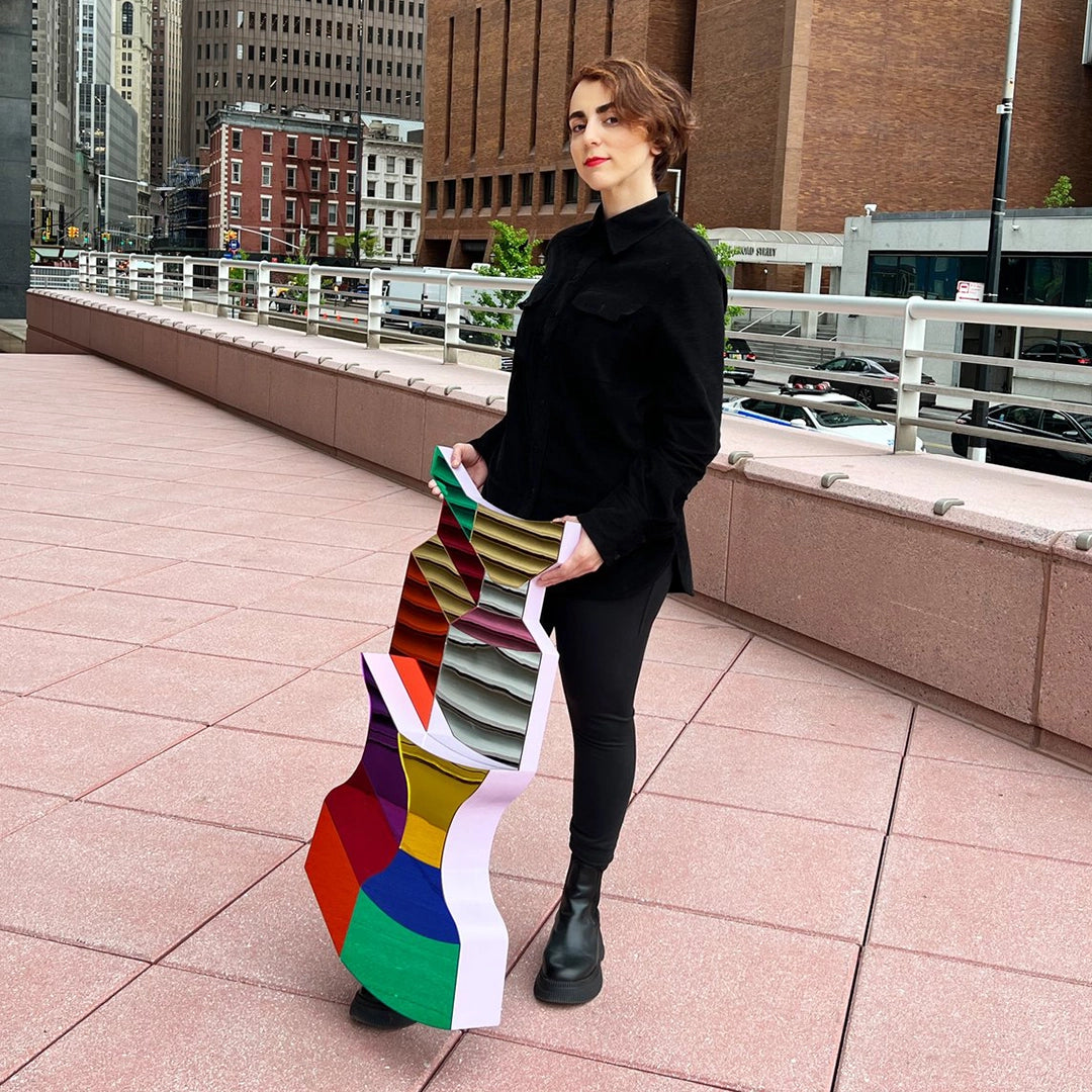 An award-winning interdisciplinary designer and artist based in New York City, Mana Sazegara focuses on designing textiles, wall coverings, wall pieces, and paintings. She studied architecture and became fascinated with using architectural forms and geometries in her designs and arts. Her architectural background has led her to approach design problems with noble solutions.